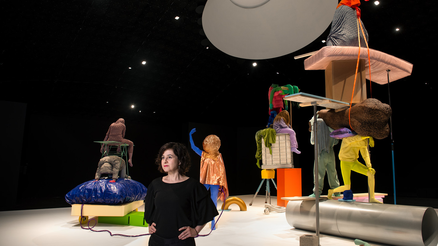 Anna Estarriolan näyttelyssä Staged Circumstances and Piles of Things (Lavastettuja olosuhteita ja kasoittain asioita) akrobaatti seisoo hiuksillaan, eri universumin kolkista saapuneet erilaiset elementit pitävät puheenvuorojaan pöydän ääressä ja jättiläismäisen pipon sisältä kuuluu kuisketta. Mahdottoman ja mahdollisen rajat häilyvät ja tapojamme hahmottaa todellisuutta tarkastellaan usealta eri kantilta. Estarriola yhdistelee installaatioissaan sekä kuvanveistoa, liikkuvaa kuvaa, ääntä, elektroniikkaa että esitystaidetta. Moniulotteisissa teoksissa kuvataan pyrkimyksiä kohti kommunikaatiota, ymmärrystä ja yhteistyötä, sekä näihin pyrkimyksiin erottamattomasti liittyviä epävarmuuden ja epäonnistumisen hetkiä.