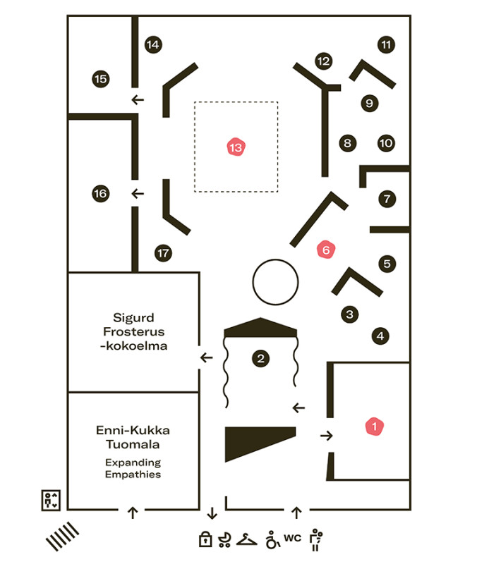 Teokset muodostavat Amos Rexin maanalaisiin saleihin eräänlaisen aaltoilevan rytmin, joka kannattelee läpi näyttelyn mikro- ja makrotasoilla kulkevan maailman. Mittakaavat ja etäisyydet vaihtelevat teoksesta toiseen ja eri aistit aktivoituvat muuttuvan perspektiivin myötä. Installaatioista pikkuhiljaa paljastuvat kerrokset ja sisäkkäiset näkymät ovat kuin päättymättömän näytelmän kohtauksia tai lavastettuja olosuhteita, joihin pääsemme erilaisista kulmista kurkistamaan. Moninaisilla materiaaleilla leikittelevissä teoksissa ihmetellään toistuvasti niin totuuden käsitettä kuin olemisen muotoja, kaihtamatta kömpelyyttä tai vaikeita kysymyksiä, joihin ei välttämättä ole olemassa yhtä oikeaa vastausta.
