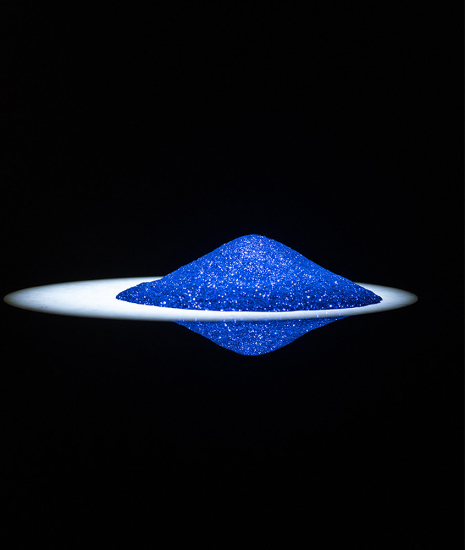 Anna Estarriola: Our weight in ashes is 3,5% of our body weight, I have ordered my ashes in blue, I want to become blue stardust reaching the moon (yksityiskohta), 2015.