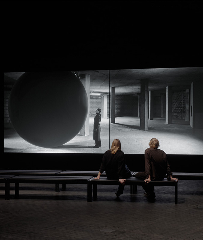 LS: Kuten kuvittelen muidenkin taiteilijoiden tuntevan, kun he käyvät ensi kertaa Amos Rexissä, tila herättää kunnioitusta ja tuntuu täydellisesti räätälöidyltä esille tulevalle teoskokonaisuudelle. Tilojen koko itsessään kutsuu suuren kokoluokan installaatioita ja elokuvia saavuttamaan koko potentiaalinsa. Mutta, ennen kaikkea, arkkitehtuuri täydentää esillä olevien teosten keskeisiä tärkeimpiä yksityiskohtia. Elokuvateokseni In Vitro sijoittuu maanalaiseen bunkkeriin, armottomaan brutalistiseen tilaan, jossa päähenkilö pyrkii jättämään pian taakseen maanalaisen piilopaikkansa ja muuttamaan maan päälle. Suuri pyöreä veistos, Monument for Lost Time (Menetetyn ajan muistomerkki) sopii hyvin yhteen kaartuvan katon täplikkään pinnan ja pyöreiden kattoikkunoiden kanssa. Ja oopperateos As if No Misfortune Had Occurred in the NIght soi nyt omassa maanalaisessa konserttisalissaan, kaikuen tilan avaruudessa, joka korostaa menetyksen, historian ja perityn trauman teemoja. Teokset välittävät usein klaustrofobian ja eristyksen tunteita, joita maanalainen tila sekä peilaa että vastustaa, vahvistaen vastentahtoisen maanpaon tunnetta, antaen teosten samalla hengittää.