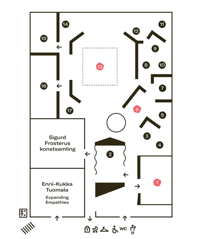 Verken bildar ett slags böljande rytm genom Amos Rex’ underjordiska salar, en rytm som bär upp den mikro- och makrovärld som genomsyrar hela utställningen. Skala och avstånd varierar från verk till verk, det föränderliga perspektivet aktiverar olika sinnen. Installationernas lager och överlappande vyer blir synliga stegvis, som scener i en ändlös teaterpjäs eller iscensatta tillstånd som vi kan titta på ur olika vinklar. Verken leker med varierande material och bär på en oavbruten förundran över såväl sanningsbegreppet som varandets former, utan att sky vare sig klumpighet eller komplicerade frågor som inte nödvändigtvis har ett enda korrekt svar.